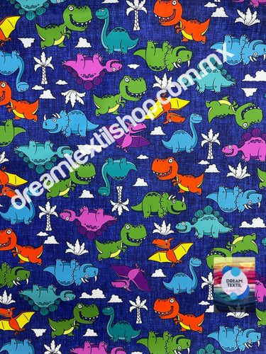 Microfibra Stretch Antifluidos Dinosaurios fondo azul marino