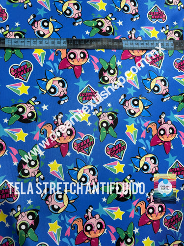 Microfibra Stretch Antifluidos Chicas Superpoderosas Azul estrella